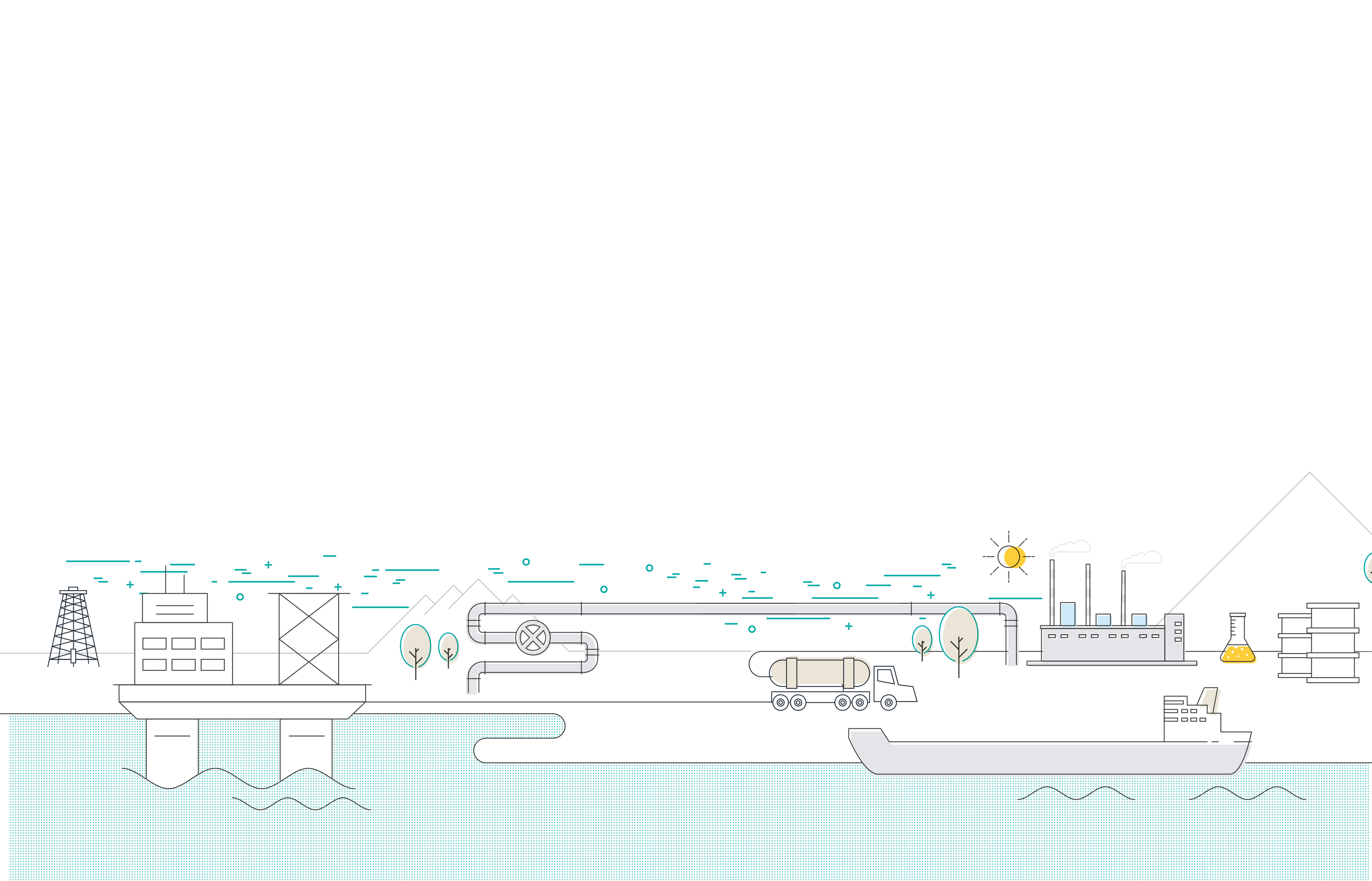 Once petroleum resources have been extracted and undergone initial processing to separate and stabilize them, our midstream operations oversee the transportation of oil and gas to end-users or plants, where they are further processed. At this stage, crude oil and other liquids are sent to refineries through pipelines, by ship or truck. Gas is transported via pipelines, or liquefied and shipped as liquid natural gas (LNG) for regasification close to end-users. Storage is also required for both oil and LNG.