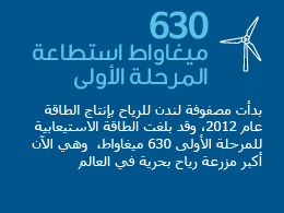بدأت مصفوفة لندن بإنتاج الطاقة عام 2012، وهي الآن أكبر مزرعة رياح بحرية في العالمالطاقة الإنتاجية للمرحلة الأولى